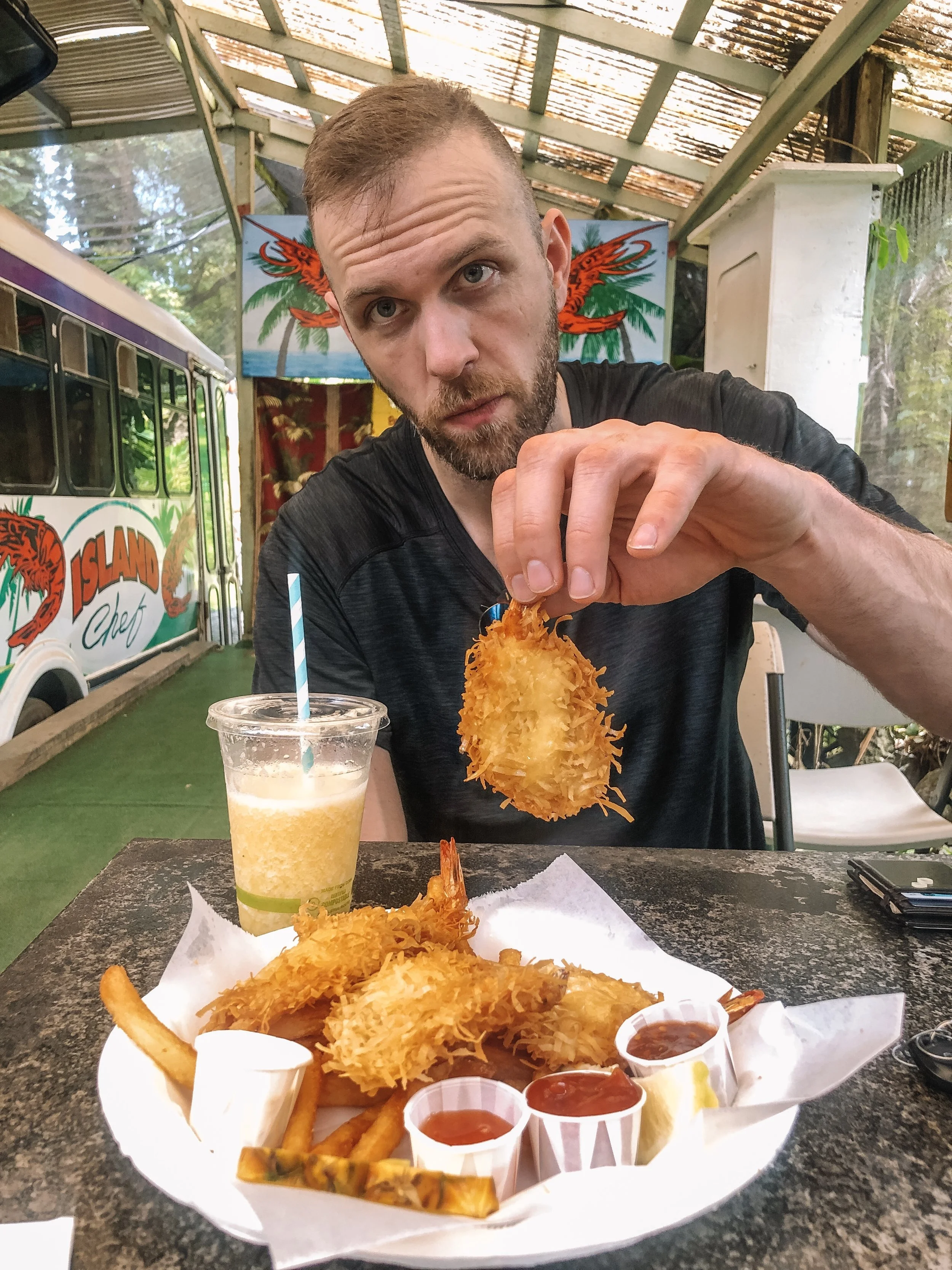 By now you’re probably getting hungry (if you haven’t already bought multiple loaves of banana bread - no judging here!) and Nahiku Marketplace is a perfect place to stop for a quick bite. There’s an array of food truck options here, with everything from BBQ to Thai food. My absolute favorite dish I’ve had here was the coconut shrimp & chips from Island Chef!