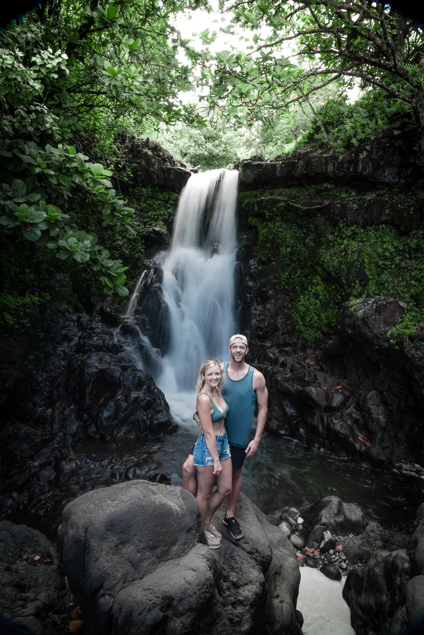 This is the beach where Sean proposed! It’s the only black sand beach on Maui and it’s absolutely stunning, but it can get very crowded. It’s an easy place for tour buses to stop, so expect crowds if you come here around noon or later. We loved our time on this beach when we came at sunrise, because we pretty much had the whole place to ourselves! This would be a great stop if you’re planning on staying overnight in Hana, because you could can go at less crowded times (early morning, late afternoon/sunset) or if you get a really early start, this would be a great mid-morning stop.